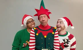 In classic cabaret style, the performers in this show routinely joke with audience members, break character, argue over different aspects of the show, and under the skilled musical direction of Carol Z Shane, launch into humorous holiday songs every few minutes or so. The opening number involves wishing us a Merry Christmas, Hanuka, Kwanzaa, Solstice, Festivus... and Existential Angst (to include the atheists). This is followed with an array of clever and funny songs covering non-traditional holiday subjects like farting on Mall Santa's lap. While the vast majority of the numbers are unapologetically goofy, the show sprinkles in a couple lesser-known holiday gems into the musical mix, providing just the right amount earnest sweetness before diving back into subjects like poultry stuffing related PTSD. Also following the cabaret format with great effect are lively skits and scenes that might have garnered titles like, Twilight Zone: Dirty Santa Episode, Incredible Banana Slicer Stocking Stuffer, and The Goose The Goose! (yet another hilarious jibe at A Christmas Carol). There are just enough local references about East Tennessee to keep the production intimate and amusing but not so many that it feels like pandering, so the overall effect is a polished but very informal, very inviting, and very very funny production.